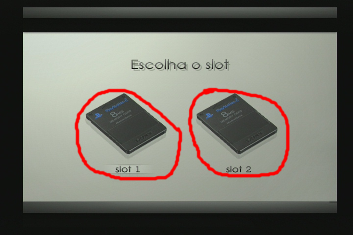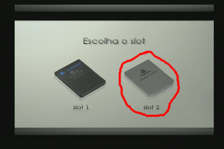 NOTA: O Memory Card Annihilator reconhece automaticamente se possui um Memory Card em qualquer uma das duas entradas do seu console, e se o Memory Card é de Playstation 2 ou Playstation (one), caso não reconhecer nenhum Memory Card vai aparecer um simbolo de interrogação.