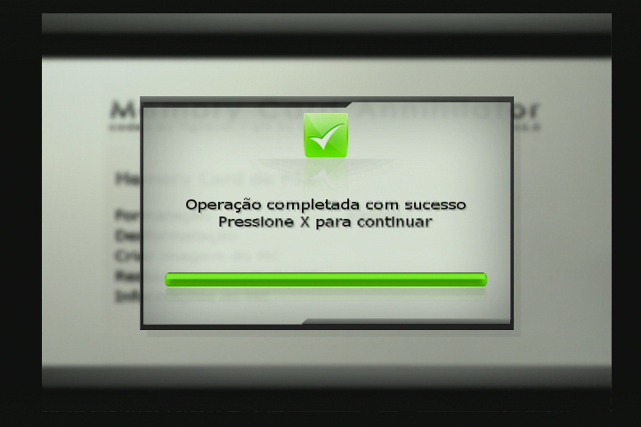 • Rápida: Esta opção de formatação resolve a maior parte dos problemas no seu Memory Card, mas tem alguns “saves” (gravação) de jogos que corrompe e não pode ser deletada nem mesmo com esta formatação.
