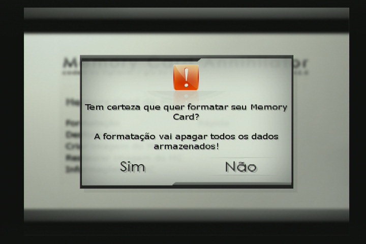 2:) Para “Desformatar” seu Memory Card navegue até a ferramenta “Desformatar” aperte o botão X do controle, vai aparecer uma mensagem como na imagem abaixo e a opção “Sim” e “Não” no final da janela, para aceitar a “Desformatação” aperte o botão X do controle.