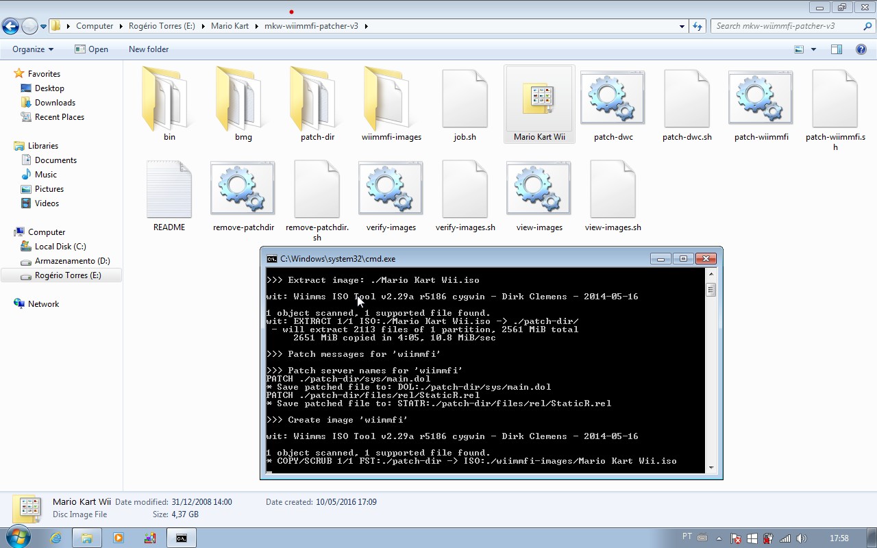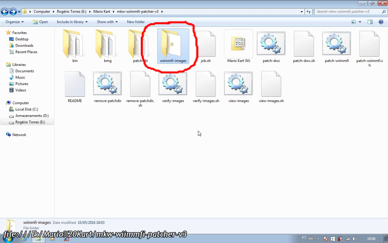 5:) Após o patch Wiimmfi ser aplicado no jogo Mario Kart WIi e o CMD fechar, irá ser criada uma pasta com nome de “wiimmfi-images”, é dentro dela que esta a imagem com suporte online.