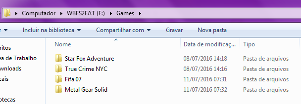 Após isso, seu HD ficará com a pasta “WBFS” para os jogos de wii, você poderá criar uma pasta “Games” para os jogos de GameCube e também colocar suas roms de emuladores seguindo as instalações corretas para cada emulador.