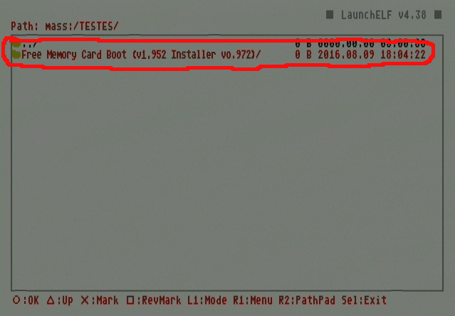Dica: Em geral o botão “O” do seu controle serve para confirmar ações e acessar opções quando você esta usando o “UlaunchELF”, mas pode acontecer do UlaunchELF estar configurado para que o botão “X” do controle faça as “vezes” do “O“, se isso acontecer você terá que ter o bom senso de adaptar o tutorial, pois todas as dicas de comandos do UlaunchELF no tutorial estarão diferentes.