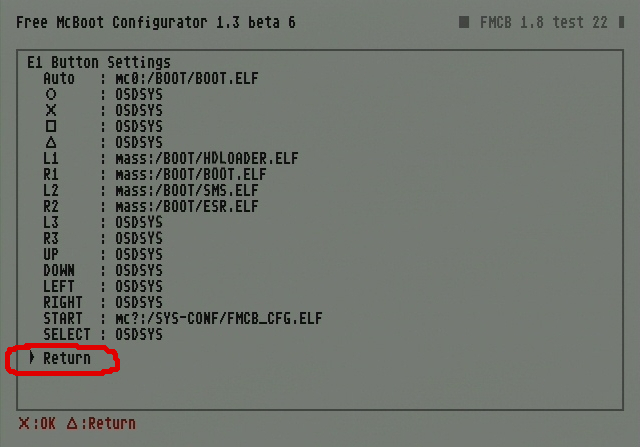 Na tela mostrada na imagem abaixo navegue até “Return” (ultima opção) e aperte o botão “O” do controle: