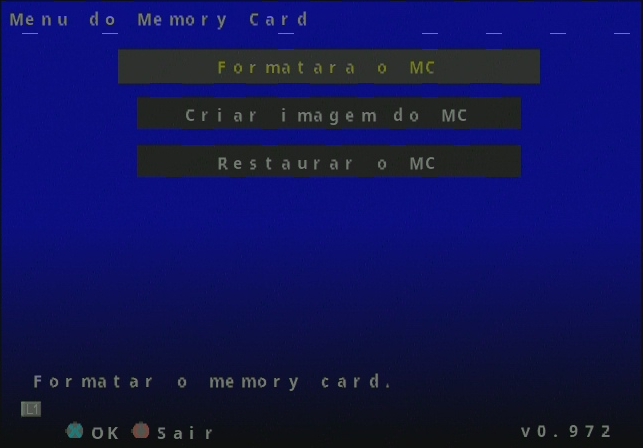 Para instalar o “Free Memory Card Boot” primeiro você terá que formatar seu Memory Card, para formatar seu Memory Card, aperte “R1” duas vezes até chegar na tela mostrada na imagem abaixo: