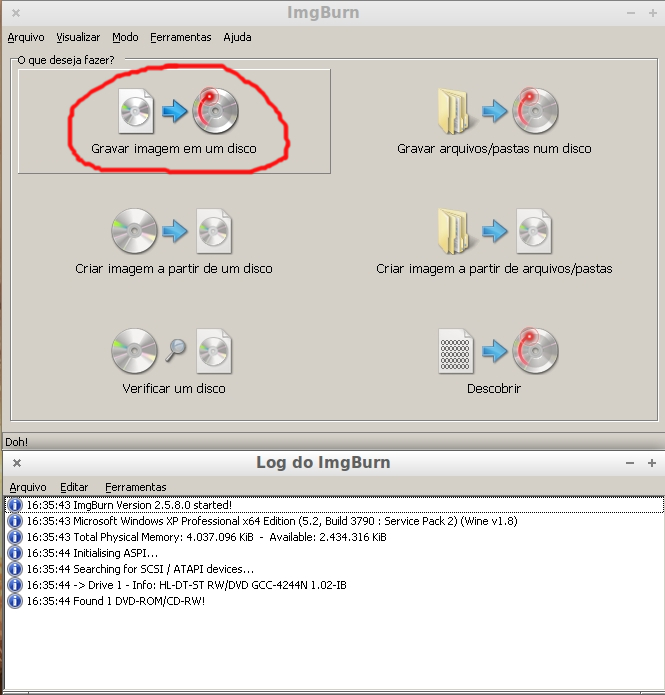 Primeiro grave o CD ou DVD com o ULaunchELF CD (“ULaunchELF CD (v4.38).iso”) com o programa “ImgBurn” em velocidade mínima (1x) para que seu Playstation 2 não tenha problema na hora de ler a Mídia de DVD ou CD que você gravou: