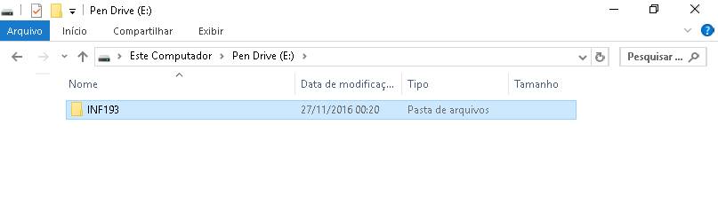 2) Coloque a pasta INF193 no pen drive ou em outro dispositivo armazenamento.