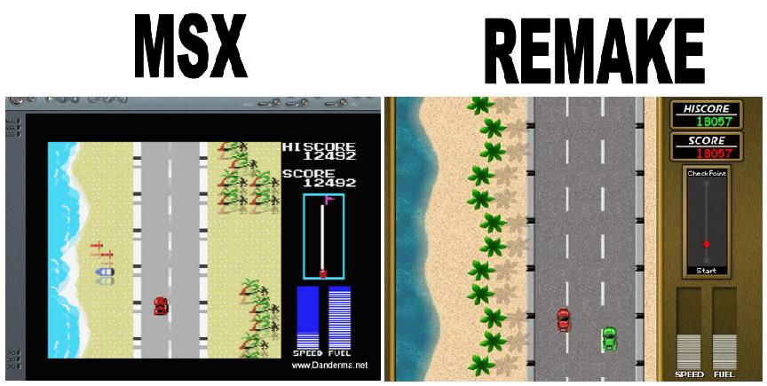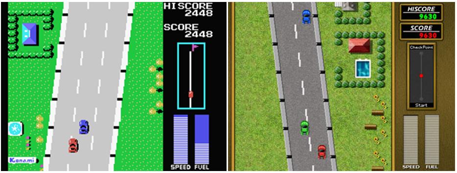 Em 1984 é lançado para Arcade, o primeiro jogo de corrida da produtora Konami, intitulado de Road Fighter, posteriormente o MSX e NES ganharam versões, é considerado um jogo com uma dificuldade bem alta, o porte para o NES (Nintendinho) é considerada á mais fácil e também possui duas pistas á menos, o seu objetivo é correr entre 6 cenários variados com paisagens montanhosas, praias e até cenários mais urbanos, em meio á tudo isso, encontrará diversos obstáculos como carros tentando te jogar para fora da pista e caminhões derrubando objetos, além de poças de óleo e placas no meio do caminho, assim fazendo o possível para não te deixar cruzar a linha de chegada antes que o seu combustível acabe, este jogo é considerado um dos grandes clássicos daquela época, e seu Remake foi produzido pela Brain Games em 2003, usando a versão do MSX como base, lançado primeiramente no PC e anos depois portado ao Nintendo Wii através do “The Homebrew Channel”, sem mais delongas, vamos ligar o rádio e acelerar o carrão cantando “Meu carro é vermelho, não uso espelho pra me pentear”.