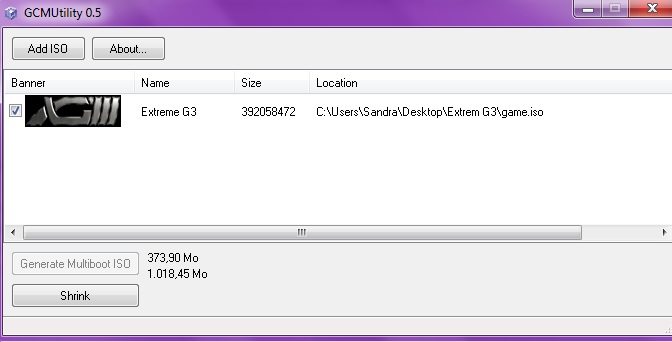 Mas como iremos rodar os jogos através do Nintendont, podemos retirar este lixo, então após selecionar a ISO e marcar a caixa de diálogo, aperte “Shrink”