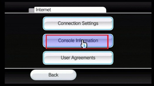 Entre em “Console Information” e aparecerá o “MAC Address” do console.