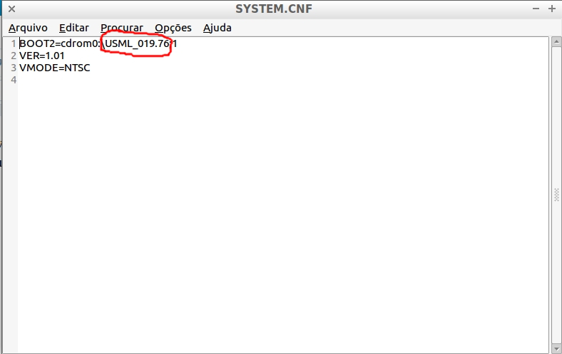 2º) Após vocẽ determinar uma nova nomenclatura para o executável do “Ultimate $ony MultiLoader”, abra o arquivo “SYSTEM.CNF” com um bloco de notas ou um editor de texto, procure a linha: