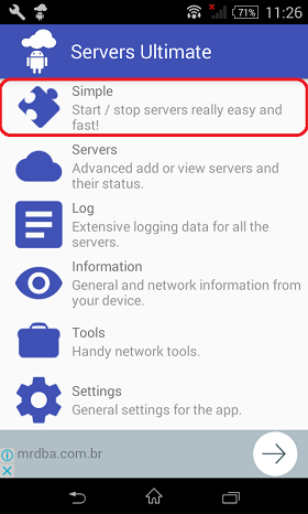 – Como mostrado na imagem abaixo, no menu  inicial do Server Ultimate Pro vá para a primeira opção Simple: