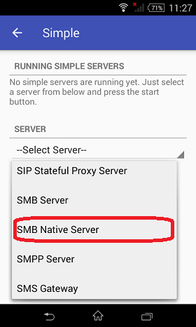 Em Simple  vá para a opção Servers e procure e escolha a opção SMB Native Server, caso o programa peça para instalar o Server Pack B instale o que está no nosso pacote: