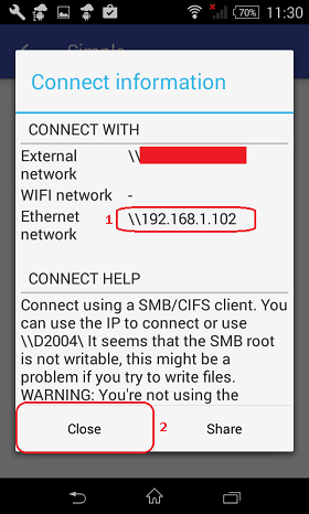 Ainda em Server logo abaixo clique em Start, vai abrir uma janela com o seu IP, anote o mesmo pois vai precisar para configurar no Open PS2 Loader clique em Close e volte para o menu principal do programa: