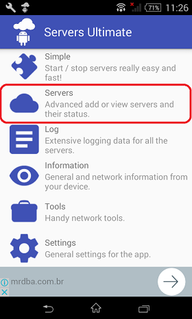– De volta ao Menu principal do programa,  abra agora a opção Servers como mostrado na imagem abaixo: