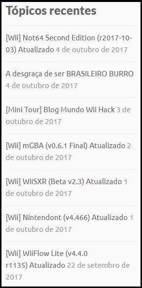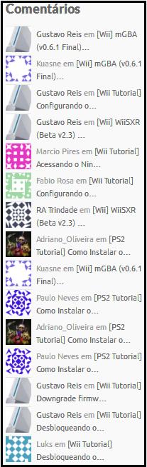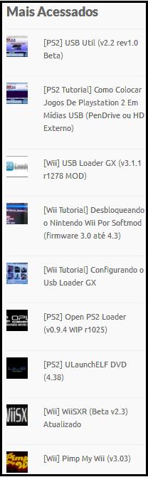 No canto direito do blog, temos uma lista com os últimos postes feitos por algum administrador do blog, seja algum tutorial, aplicativo ou emulador de Nintendo Wii e Playstation 2