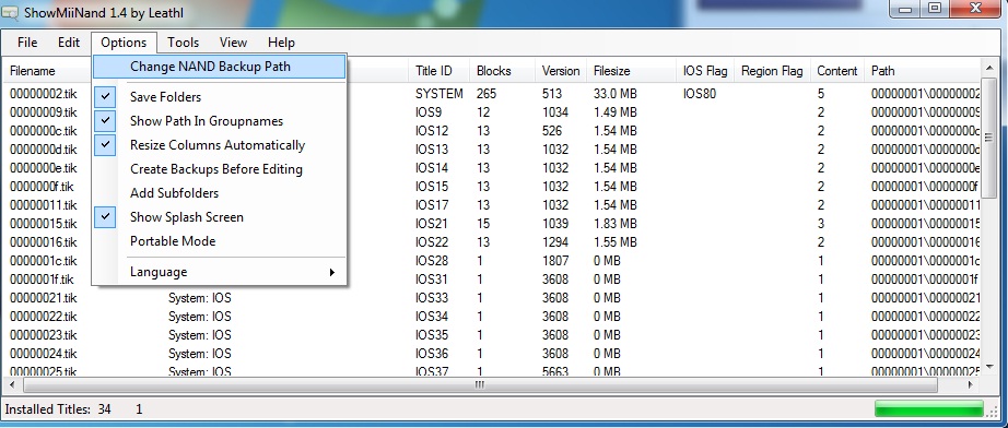 • Abra sua Mídia USB (Pendrive ou HD Externo) no computador e deois abra o ShowMiiWads e vá em “Options -> Change NAND backup paths” (o caminho na sua Mídia USB é “USB/nands/pl_us”).