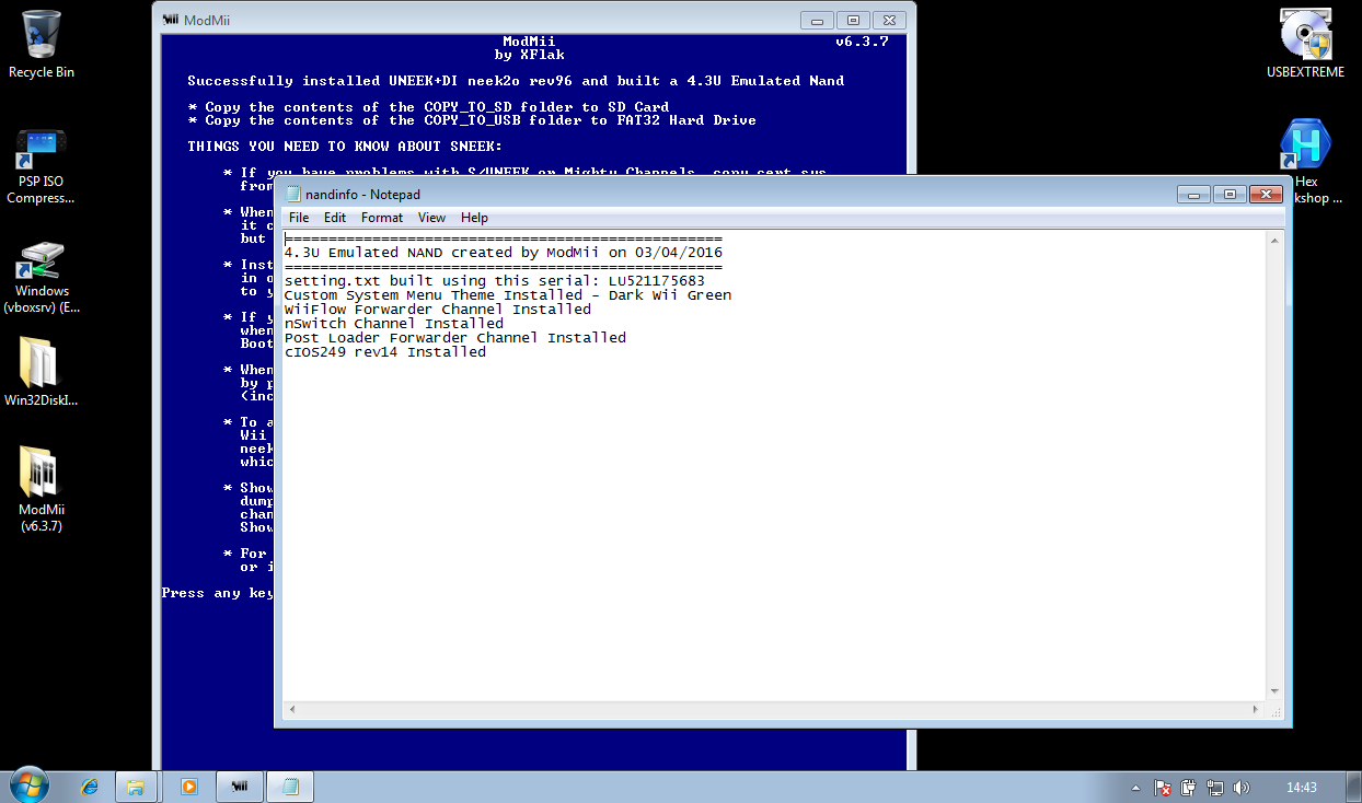 • A sua NAND nova precisa ser configurada (é como um Nintendo Wii acabando de ser ligado pela primeira vez), se algo parecer de estranho, não se desespere, lembre-se, não é a sua NAND real, simplesmente reinicie o seu Nintendo Wii e ele estará intocado.