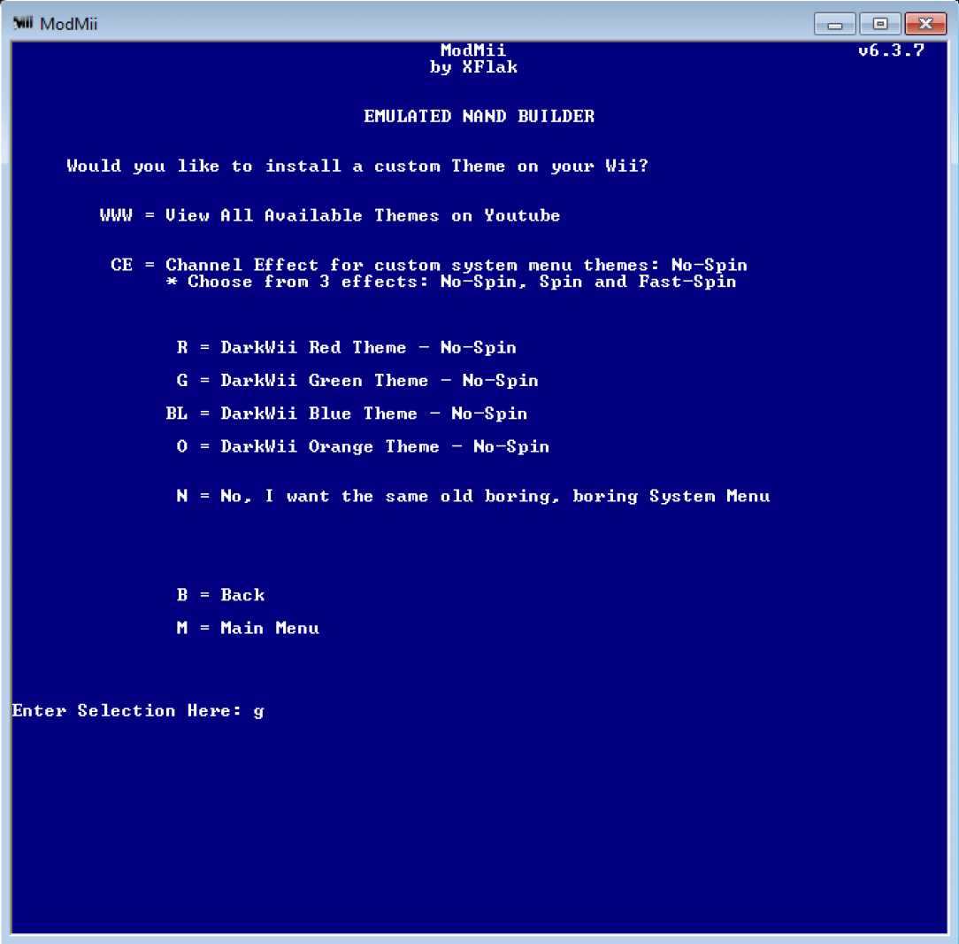 • Agora você escolhera a cor do do tema para a NAND emulada, caso não queira tema digite “n” para obter o tema padrão, e de um “Enter”.