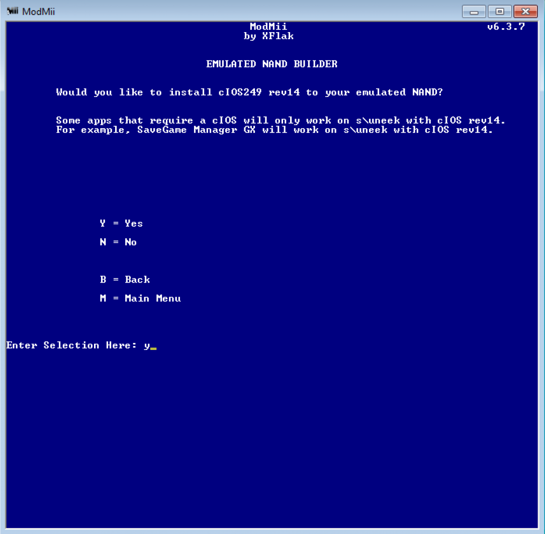 • Feito isso aparecera as características da NAND digite “y” e sente-se confortavelmente pois esse processo pode demorar vários minutos, dependendo da velocidade de sua conexão e do seu PC. Lembre-se um Wii novo está sendo construído.