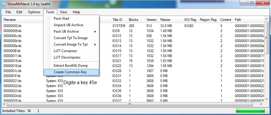 • Depois vá em “Tools -> Create Common Key -> digite -> 45e”  e aperte OK.