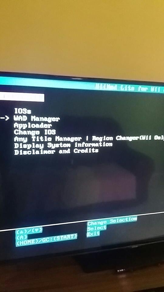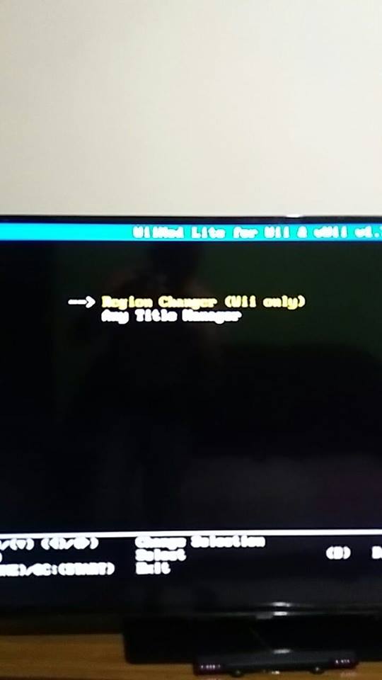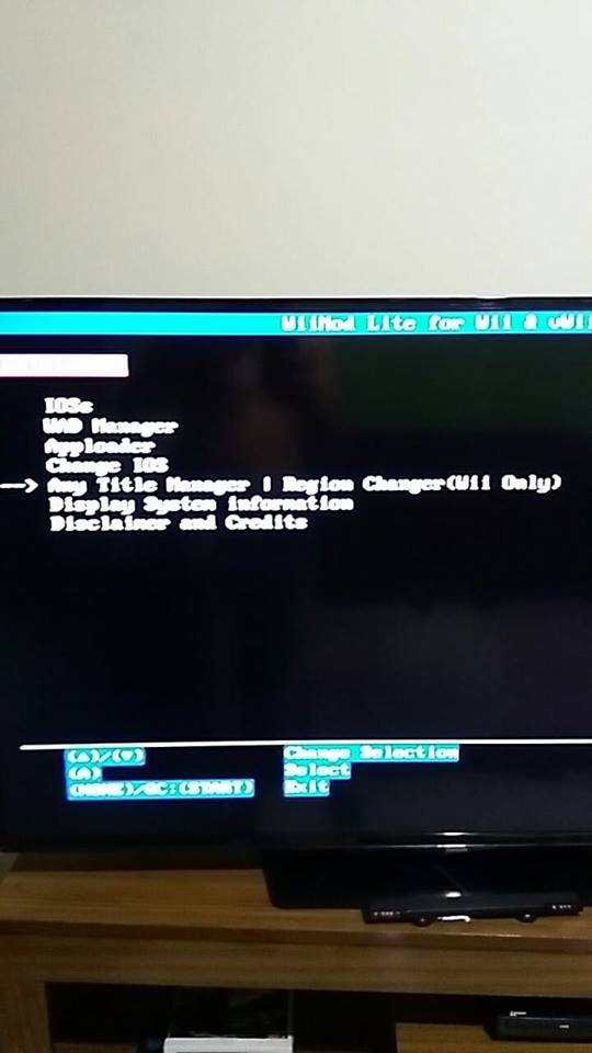 3) Aperte o botão “B” no seu Wiimote para voltar a tela inicial do “Wii Mod Lite“, selecione a opção “any title manager / region changer wii only“.