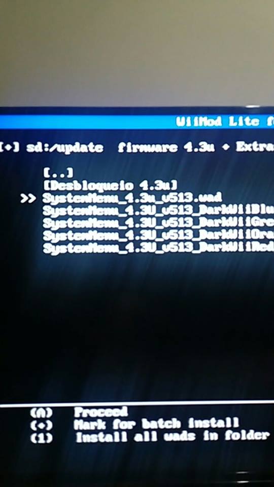 8) Para finalizar volte para a tela inicial do “Wii Mod Lite” , selecione a opção “Wad Manager” e instale o “System Mnu 4.3u wad“, que vai estar disponível na pasta “update firmware 4.3u + Extras” do pack que estará disponível no final da postagem para ser baixado.
