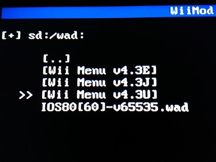 2 – Depois de entrar na opção “WAD Manager“, instale primeiro o arquivo “IOS80[60]-v65535.wad” pois ele é o responsável pelo funcionamento do “System Menu 4.3”.