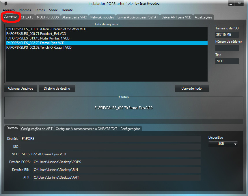 FINALIZANDO: Ao final da conversão será criado no diretório que você destinou uma pasta chamada “POPS” com todos os arquivos necessários para execução do emulador e claro o Jogo convertido em VCD, juntamente com a pasta VMC do jogo com os arquivos de Memory Card.