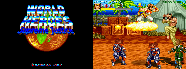 WORLD HEROES – SUPREME JUSTICE: Este é um jogo onde você lutar contra as forças de Zeus e Neo-Dio. São cinco personagens jogáveis e possui suporte a dois jogadores, os botões são simples, sendo quatro botões ativos, Socar, Chutar, Pular e Bloquear, você tem como diferencial a capacidade de realizar muitos movimentos especiais, combos e combinações de Chute / Soco!