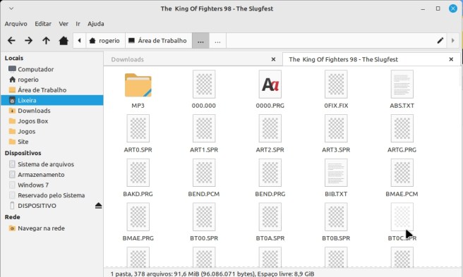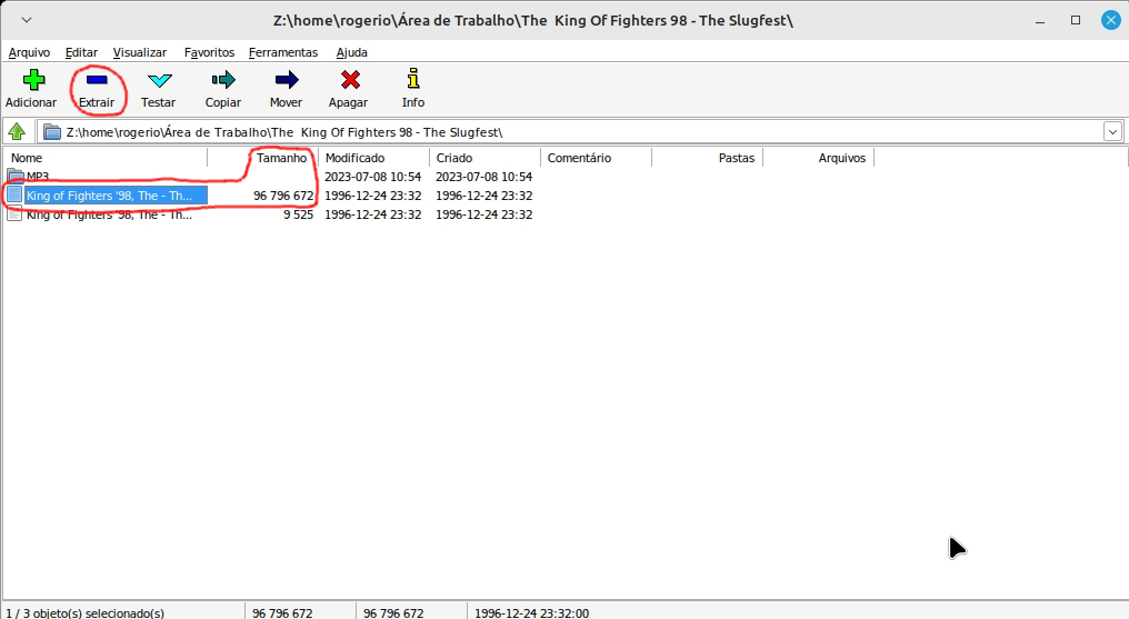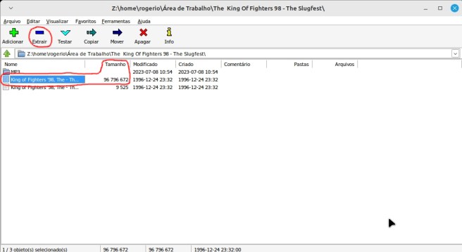 1 –  Baixe o jogo que deseja em algum site (pesquise no google), em geral ele vira compactado, crie uma pasta com o nome do jogo e extrai o mesmo com o programa 7-zip (se não tiver o 7-zip no seu PC instale). Aqui vou usar como exemplo o jogo “The King Of Fighters 98 – The Slugfest”.