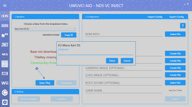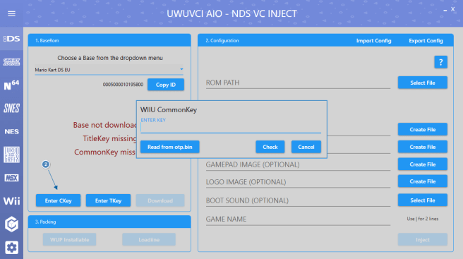 Em “CKey“, você deve inserir a CommonKey do Wii U (a qual você achar bem fácil na net, não posso divulgar) OU usar o arquivo otp.bin caso esteja com o backup do seu Wii U em dia. Esse passo só é necessário uma vez: