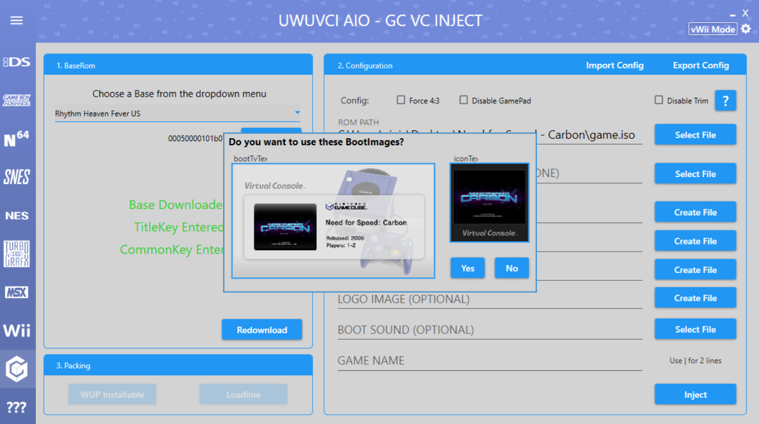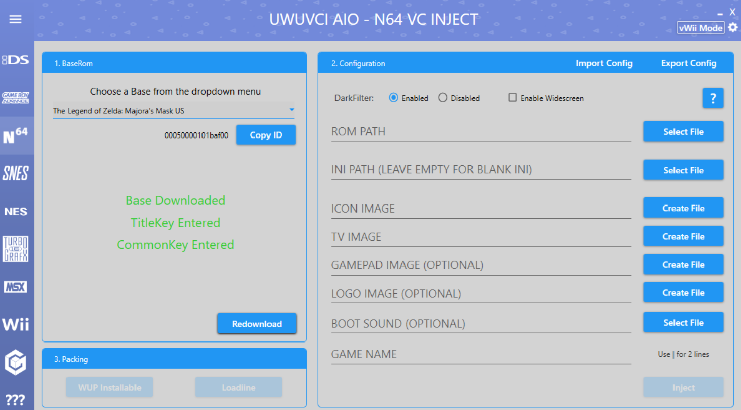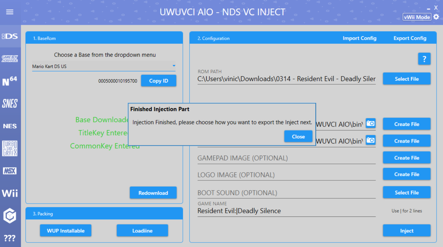 Com isso, basta repetir os ultimos passos da seção do Nintendo DS: Configurar o nome do jogo, injetar e selecionar o formato WUP e passar o arquivo pro cartão SD.