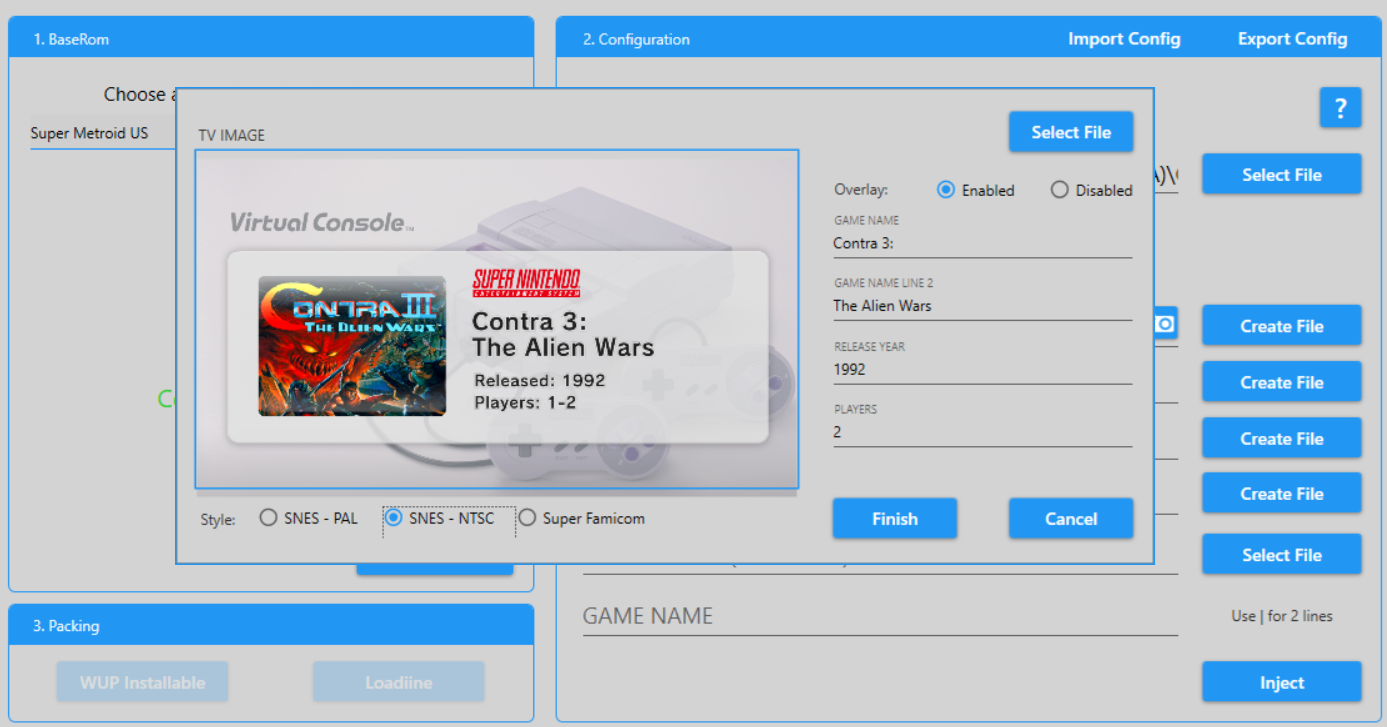 Tive que baixar uma imagem personalizada também, editar pelo programa. Com isso, o processo aqui é idêntico ao de NES, ativar o modo pixel perfect, colocar, nome, injetar, WUP e etc.
