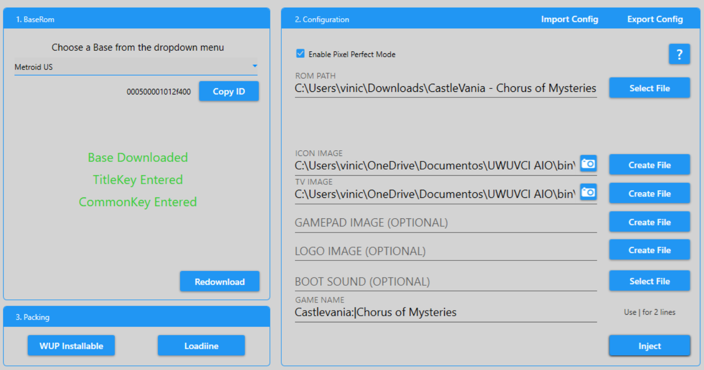 Finalizando, basta inserir o nome do jogo e repetir os mesmo passos das seções anteriores, injetar e selecionar o formato WUP: