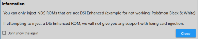 Aviso que jogos DSi Enhanced não funcionam no injetor:
