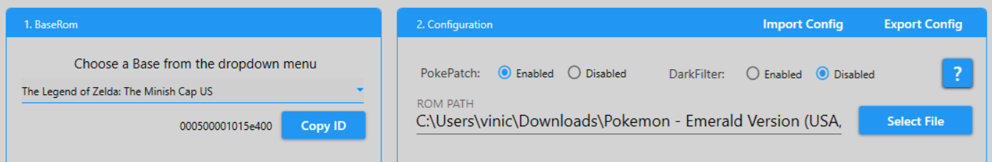 Clique em Download para baixar a base. Agora você vai selecionar o jogo que quer injetar “Select File” na “ROM PATH“: