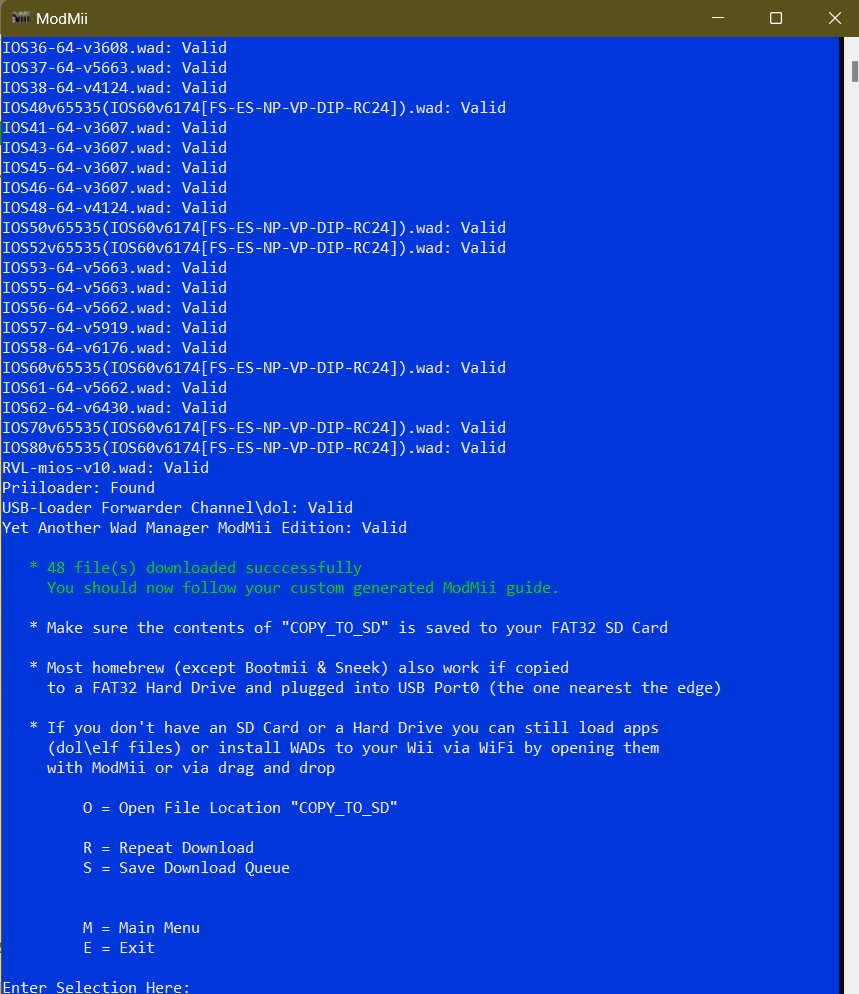 Algúem poderia me ajudar? Fui tentar atualizar as IOS pelo Pimp my Wii porém dá erro na hora do download, então fui tentar atualizar através deste metódo do mod mii e acontece a mesma coisa, da erro no download e não baixa nenhuma IOS. O que pode estar acontecendo? Eu acabei de desbloquear o Wii e quero atualizar as IOS porem não estou conseguindo, alguem pode me dizer como resolver esse problema? Meu Wii é 4.3 U, já tenho o homebrew channel instalado e o priloader, e também já fiz backup da nand