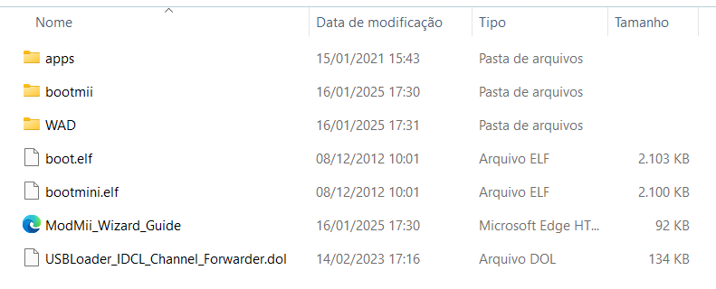 Realmente, para mim não aparece a pasta preta do boot mii! já fiz de tudo.