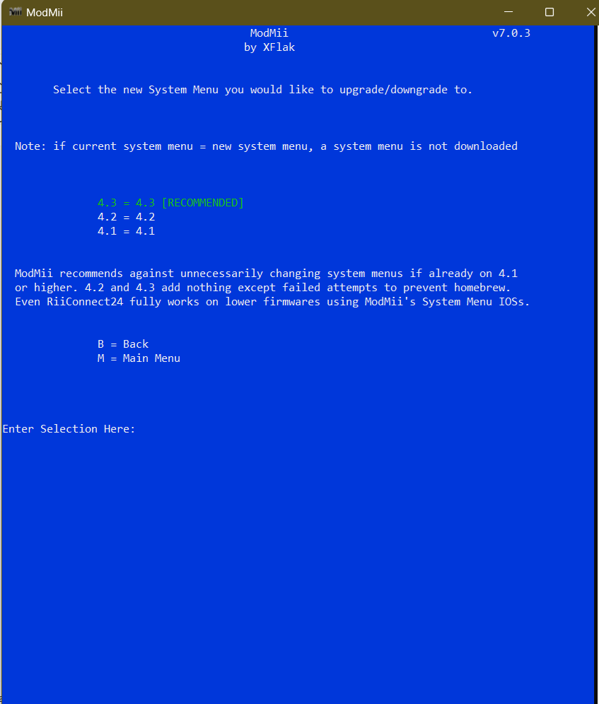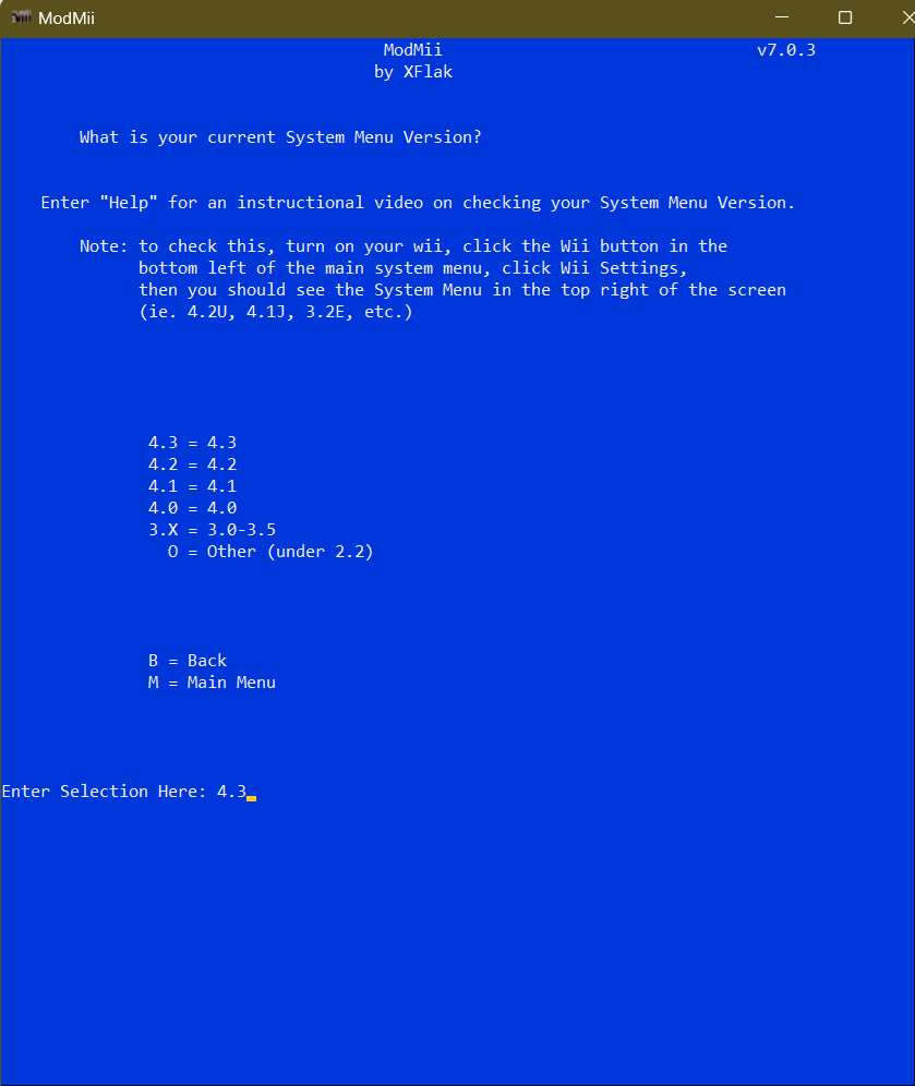 Digite a versão do seu “Wii System Menu” como “4.3” se for o caso e confirme com enter: