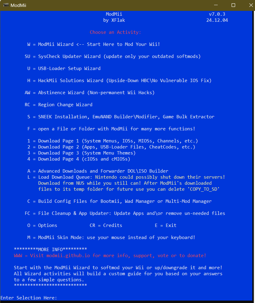 O ModMii é uma ferramenta para computador muito útil pra quem possui um Nintendo Wii, nela é possível criar uma Nand Emulada, baixar IOSs e cIOS ao seu gosto, temas para o System Menu, homebrews e algumas outras funcionalidades, inclusive a de re-desbloqueio, que quando executada pelo ModMii é bem mais fácil e prática pois atualiza todos os componentes do console por arquivos “.wad“, prontos para serem instalados de maneira pratica. Esse tutorial é muito interessante para quem comprou um Nintendo Wii já desbloqueado e não sabe muito bem as condições do console, ou mesmo para aqueles que estão tendo problemas com homebrews específicos, este tutorial também também pode servir muito bem para você como entrada para entender melhor o funcionamento do nosso maravilhoso Nintendo Wii, recomendo muito que execute este tutorial em seu console.