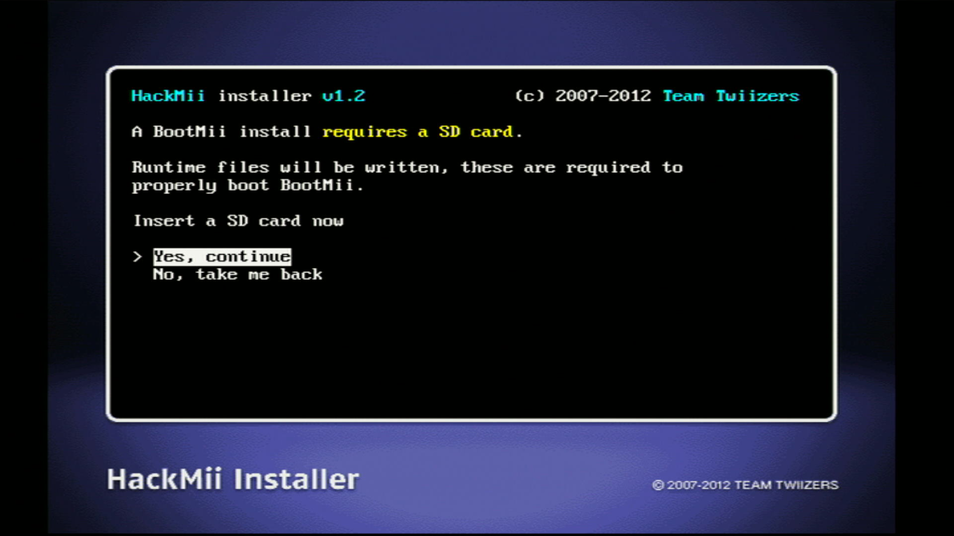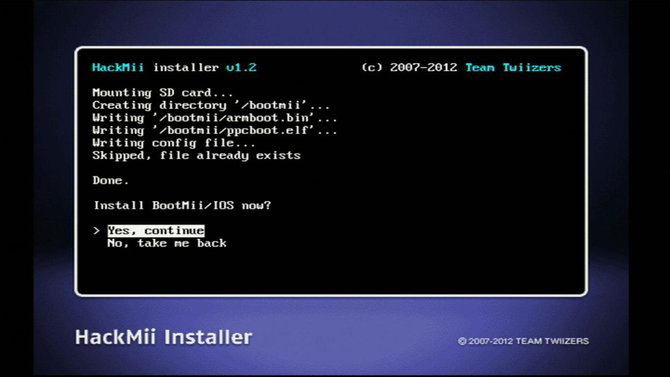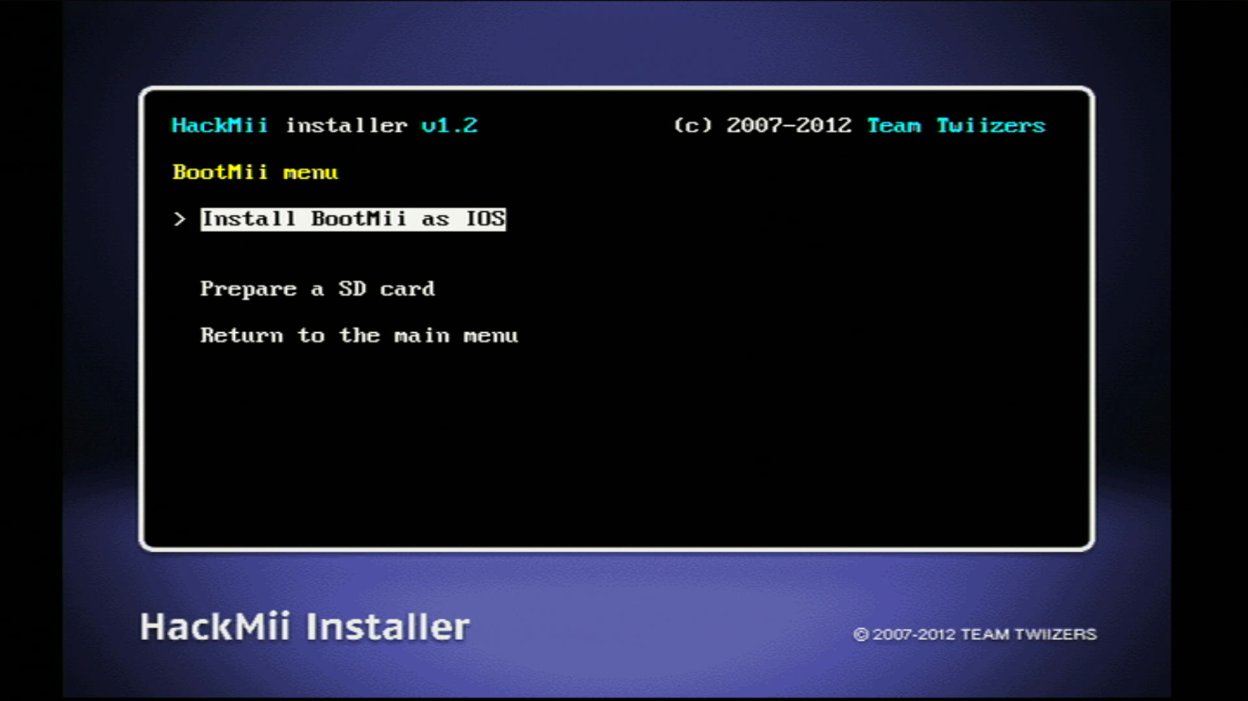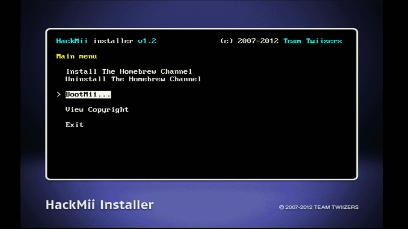 Se o exploit deu certo, você será redirecionado para o Hackmii Installer para instalar o The Homebrew Channel.