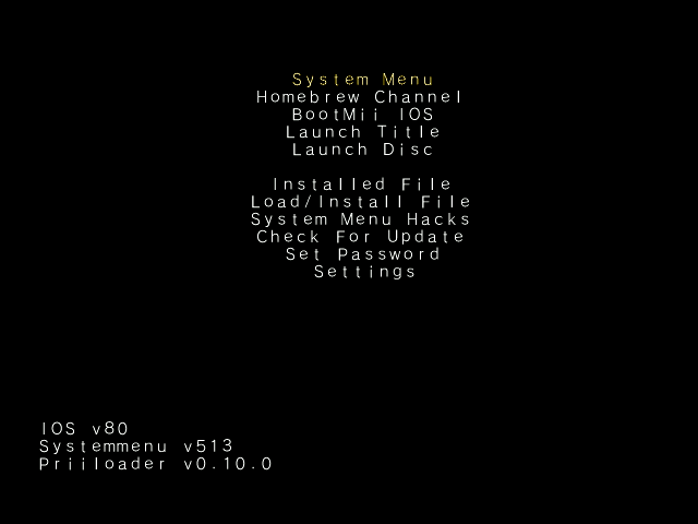 Após instalar, desligue o console. Para entrar no Priiloader, segure o botão RESET e aperte o botão POWER, aparecerá como na seguinte imagem: