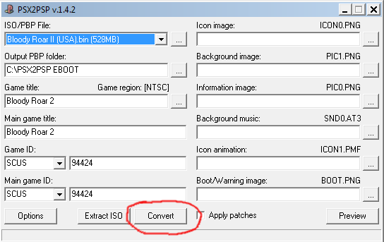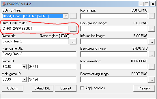 9 – Pronto. Agora vá para o local onde você escolheu na opção “Output PBP Folder” para que o programa criasse a versão pbp do jogo, la terá uma pasta com o nome “SCUS94424“, este nome estranho nada mais é que a codificação do Bloody Roar 2, dentro desta pasta terá o arquivo EBOOT.PBP, renomeio-o para o nome do jogo, então ficará Bloody Roar 2.PBP por exemplo, mas você pode renomear da forma que achar melhor.